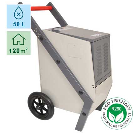 Powerful air dehumidifier / construction dryer with metal housing. For effective drying of larger rooms and water damage.