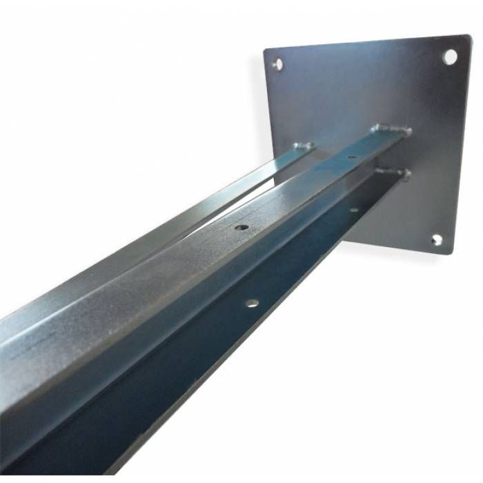 Zidna konzola od galvaniziranog čelika (otporna na hrđu), s potporom za stabilizaciju. Duljina 63 cm, 5 puta izbušena npr. za postavljanje kliznih kotača. Ova konzola je svestrano upotrebljiva: