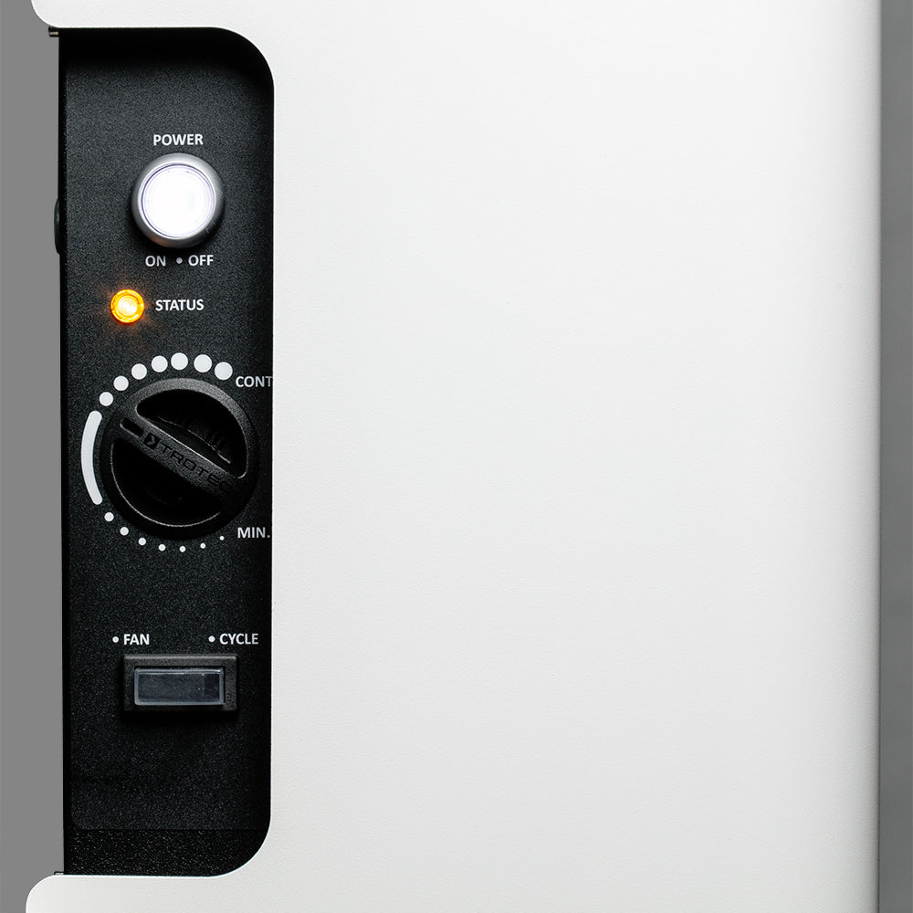 Präzise Feuchtigkeitsregelung: Ein elektronischer Hygrostat regelt die Luftfeuchtigkeit automatisch auf den gewünschten Wert.