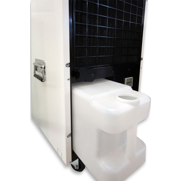 Er eignet sich für unbeaufsichtigten Dauerbetrieb. Das Kondenswasser kann je nach gewählter Ausführung entweder im grossen 12-Liter Eimer gesammelt oder mit dem Schlauch direkt abgeführt werden (3/4"-Gewinde).