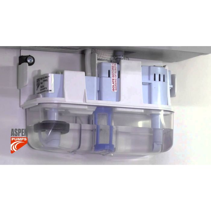 Die Kondenswasserpumpe Aspen Miniblanc ist eine elegante, zuverlässige Pumpe, welche direkt unter Wandgeräten diskret und platzsparend an die Wand montiert werden kann. Die Förderkapazität von 12 Litern pro Stunde und eine Förderhöhe von max. 10m sind beachtlich. Sie erlaubt das Abführen des Kondenswassers von kleineren, aber auch grösseren Entfeuchtungsgeräten sowohl in ein Lavabo, wie auch über mehrere Stockwerke in die Höhe. Die Pumpe eignet sich für Kondenswasser, nicht aber für Schmutzwasser. Sie verfügt über ein Kabel mit zweipoligem Schweizer Stecker (230V). Die Montage ist einfach und auch für mässig begabte Handwerker durchaus lösbar. Der Schlauch des Luftentfeuchters wird dabei in die vorgesehene Einfüllöffnung gesteckt. Ist ein gewisser Füllstand erreicht, beginnt der Abpumpvorgang automatisch und fast geräuschlos. Die Pumpe läuft entsprechend nicht permanent, sondern nur im Intervall, wenn sich der integrierte Auffangbehälter gefüllt hat. Ein Rücklaufschutz blockiert das Zurücklaufen des Schlauchinhaltes in die Pumpe.Beispiele ungefähre Förderleistung (abhängig von Förderhöhe):
