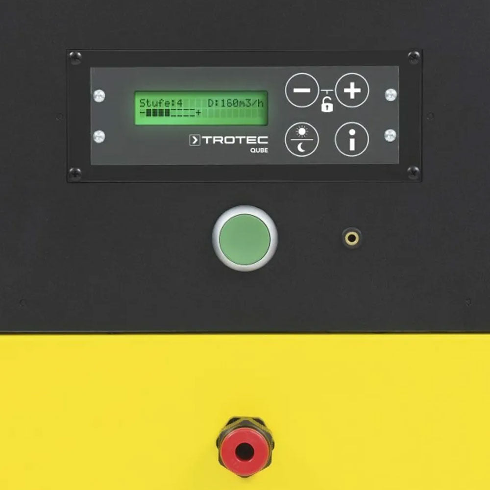 Statusi aktual i funksionimit dhe fluksi i volumit janë të lehta për t'u lexuar në ekran si një ekran me tekst të thjeshtë, edhe në errësirë ose nga një distancë. Përveç kësaj, ngjyra e ndriçimit të ekranit tregon automatikisht se sa efektivisht mund të rrjedhë ajri i tharjes përmes shtresës izoluese në instalimin tuaj. E gjelbërta konfirmon rrjedhën optimale të volumit, portokallia tregon zonat kufitare dhe me një LED të kuqe fluksi i ajrit nuk është i mjaftueshëm për zonën, kështu që një optimizim i konfigurimit është i nevojshëm për tharje të shpejtë.
