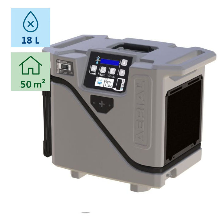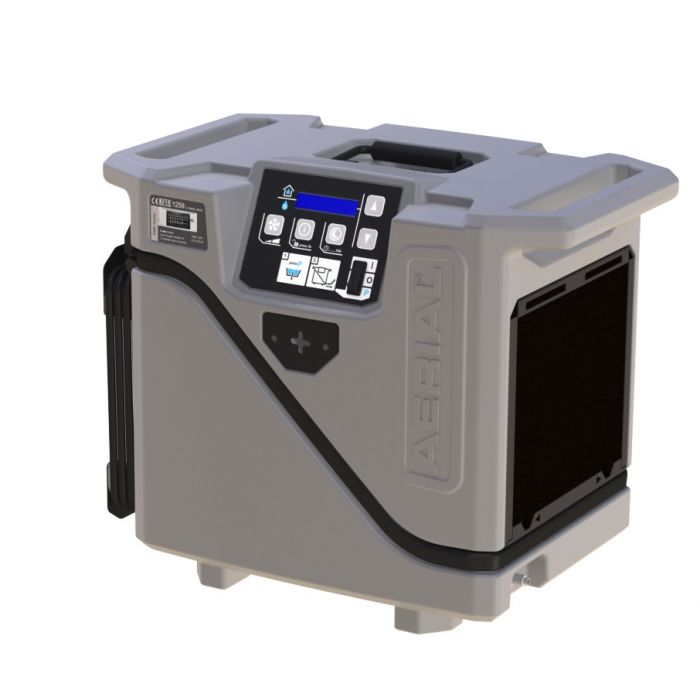 AD20是一款坚固耐用的冷凝干燥机。它轻便、易于携带,可以像手提箱一样提着。通过BlueDry技术,AD20即使在低湿度和低温下也能可靠地除湿。另一个优点是内置的自动冷凝水泵,带有溢流保护(提升高度可达4米)。最新技术采用环保制冷剂R1234yf。手术操作简单,通过创新的 eDRY® 电子设备进行。所有控制元件排列清晰,所有重要的操作状态随时可查。显示屏上显示设定湿度和实际湿度。运行时间(消耗)可以方便地读取。能耗通过额外的、经过校准的电表显示。控制系统配备了记忆功能。这意味着在停电的情况下,例如在工地上,操作将在电力恢复后以不变的设置重新开始。坚固的外壳由抗冲击塑料制成。它易于清洁,并且便于拆卸以进行可能的服务工作。它配备了一个可折叠的手柄。侧面可以安装绑带。安全插座用于连接其他设备。特性和优势• 外壳:由坚固、抗冲击和耐紫外线的塑料制成,重量轻,仅为16.4公斤。 • 电缆:集成电缆卷绕。• 安装: 独立或安装在Aercube系统上(AERCUBE固定系统的固定点)。• 空气导向: 横向,侧面进气和排气。• 空气过滤器: 保护设备免受灰尘。• 通风机: 2级,节能EC通风机。• 化霜: 需求驱动的热气化霜。• 冷凝水泵: 自动水泵,标准配置带溢流保护。• 蓝干技术:为了特别节能的运行——即使在低湿度和低温下。• 计量能源表(符合MID标准)。• 记忆功能: 在断电后,它会以未更改的设置恢复运行。因此也适合在例如定时器上使用。 • 热气除霜:由于自动自除霜,即使在较凉的环境中也可使用。• 适合无人看管的持续运行。• 自有设计:在较大数量时可提供所有颜色和您的标志。 所有AERCUBE系统组件之间100%兼容且可堆叠。 Aerial "eDRY®"... 了解更多