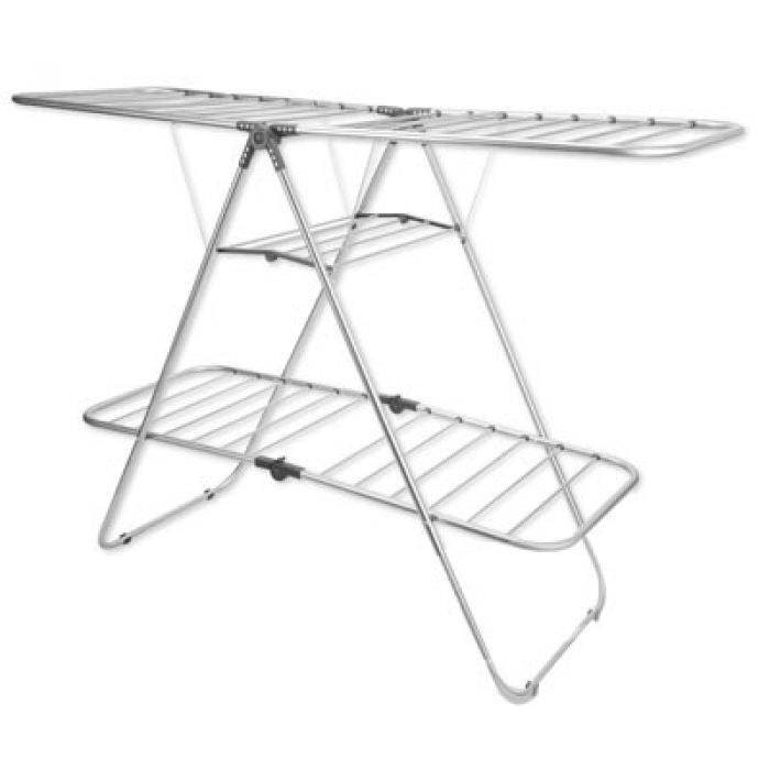 大型、坚固的晾衣架,拥有两个大层和一个小层,总共22米的晾衣杆。宽度为162厘米,是市场上最大的可折叠晾衣架。 特价,售完为止。Dryfix Luxor晾衣架轻便且稳定。即使在负载状态下也能保持良好的支撑。无需组装即可立即使用,快速搭建,快速折叠以节省空间。材料:金属管,塑料连接件。保修 2 年运费为 1 件 18 瑞士法郎(由于包裹尺寸,这些晾衣架仅通过快递发送)。 技术数据 宽度 162 厘米总高 116 厘米深度 53 厘米 了解更多